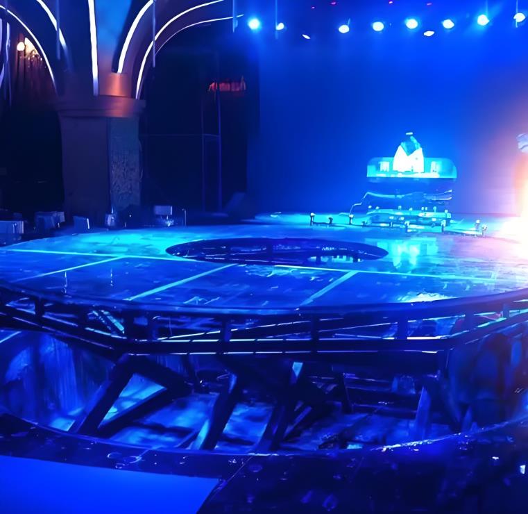 液压升降舞台可实现双层台面的升降。可根据需要亦可拼成阶梯形、多景、多层次阶梯,组成升降台群,能在行程范围内组成不同的台阶,丰富舞台多功能效果伸缩舞台适应于、会堂、影剧院、多功能厅、演播厅、文化体育场馆等的设备,伸缩舞台采用有效的导向系统,使伸缩台在平移过程中与固定台的间隙小,运行平稳、速度无级变化、同步装置、电动采用低速大扭距驱动装置,伸缩过程中平行、自如、伸缩到位、可自动实现补平旋转舞台有升降、旋转、倾斜等多种功能,控制采用自锁、互锁、行程开关、机械限位、液压防爆等保护措施。使舞台安全、平稳可靠,广泛应用于会堂、影剧院、多功能厅、演播厅、文化体育场馆、酒店等文化娱乐场所。
